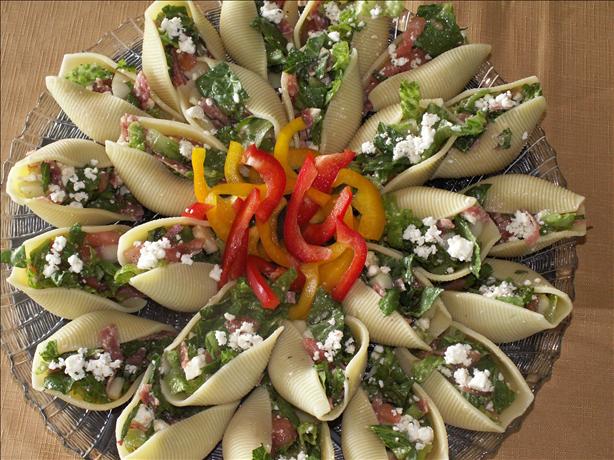 6. Advance preparation tip from a reviewer: "The day before, I cooked the shells to al-dente, rinsed them in cool water, separated them and let them cool. Then, I put them in a zip-lock. I chopped everything for the salad part and put it in a zip-lock, without the dressing. The next day, I mixed the dressing into the salad and stuffed the shells. Worked like a dream.".